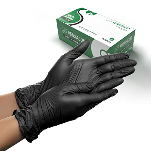 Luvas de nitrilo pretas VENSALUD | Proteção e Conforto | Ideal para tatuadores, mecânicos e salões de cabeleireiro | Sem látex, resistente e confortável | Pacote de 100 unidades.